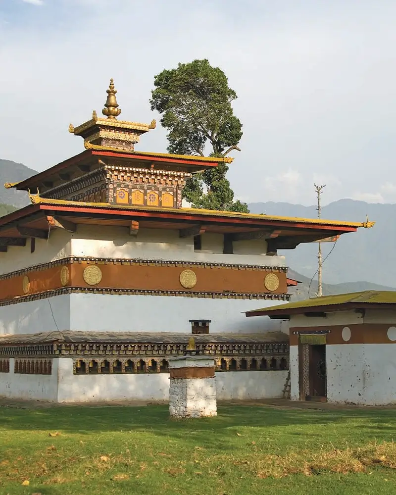 Unlike many ancient temples, Khamsum Yuley was constructed specifically to promote peace, harmony, and the well-being of all living beings. Perched high on a ridge overlooking the Mo Chhu River, it offers breathtaking panoramic views of lush valleys, terraced rice fields, and the surrounding mountains. The temple is adorned with intricate murals and sculptures representing deities from Tantric Buddhism, reflecting profound spiritual teachings.