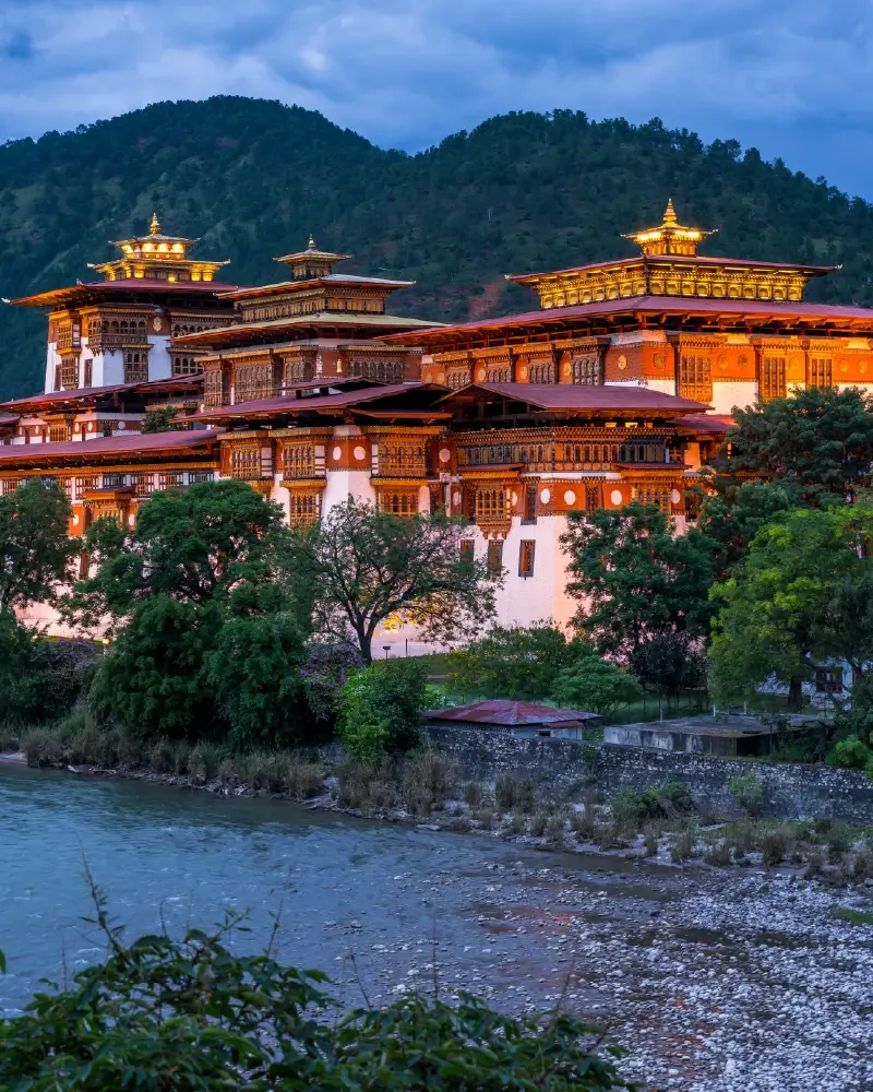 Punakha Dzong, often referred to as the “Palace of Great Happiness,” is one of Bhutan’s most iconic landmarks and a masterpiece of traditional Bhutanese architecture. Built in 1637 by Zhabdrung Ngawang Namgyal, the dzong sits majestically at the confluence of the Pho Chhu (male) and Mo Chhu (female) rivers, creating a breathtakingly serene setting.